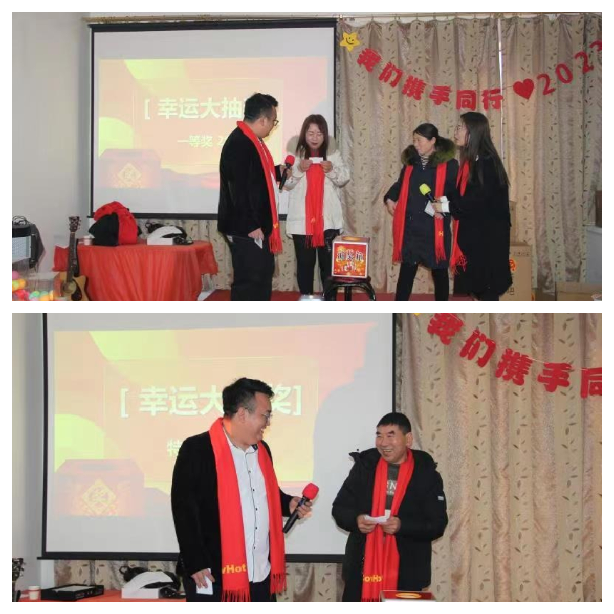 快樂的時(shí)光總是那么短暫,年會已進(jìn)入尾聲,最后我們進(jìn)入豐盛的午宴,把酒言歡,每個(gè)人都領(lǐng)取了公司精心準(zhǔn)備的新年賀禮,滿意而歸。