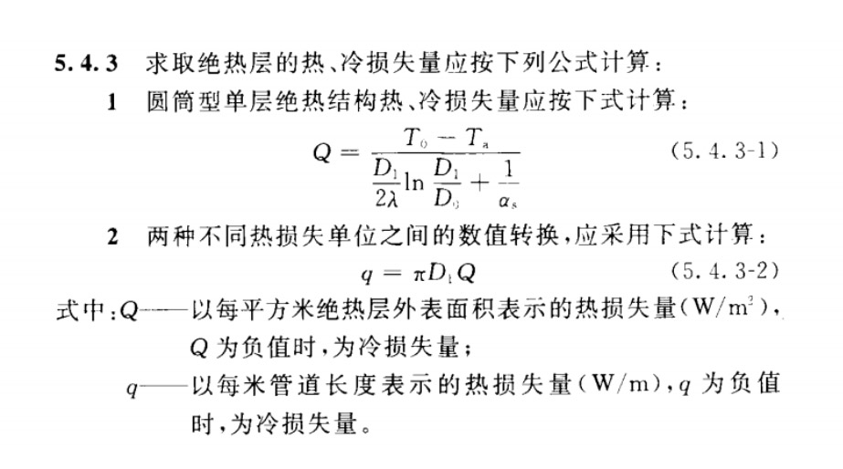 在國標文件《工業(yè)設(shè)備及管道絕熱工程設(shè)計規(guī)范 GB50264-2013》中,規(guī)定了圓筒形單層絕熱結(jié)構(gòu)熱、冷損失量計算公式: