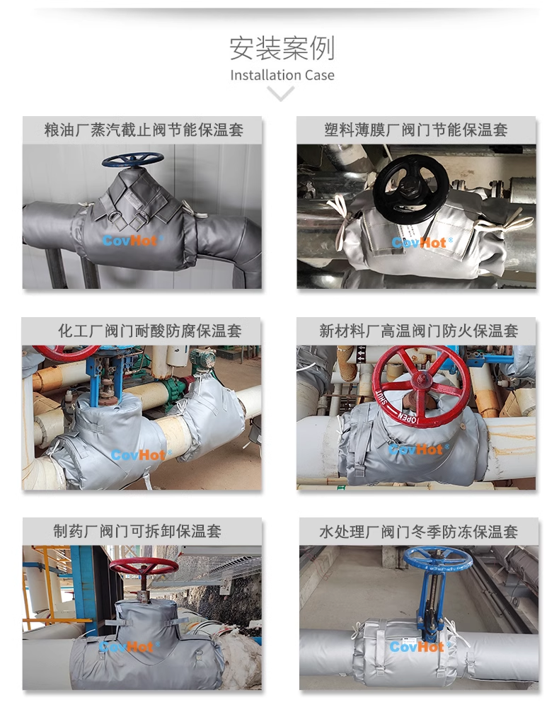 蒸汽閥門保溫是管線保溫工作的薄弱環節,雖然閥門所占面積不大,但由于保溫效果不理想,其散熱損失不可低估。科好特可拆卸蒸汽閥門保溫套采用非石棉耐高溫布做表層,內填充納米纖維,通過高強度耐高溫線制作而成。可以取代大部分傳統的以鋁皮隔熱效果優良,拆裝方便,可多次重復使用等優點。